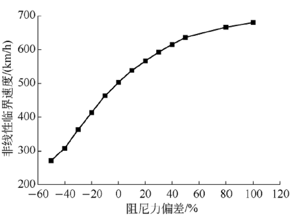 由图16可以看出车辆非线性临界速度随着抗蛇形减振器阻尼力的增加而增加.