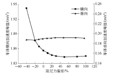 | 图10 车体加速度峰值随阻尼力偏差变化曲线Fig.10 Curves of peak acceleration of the vehicle body changing with damping force deviation |