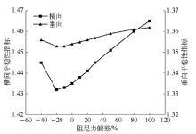 | 图11 车体平稳性指标随阻尼力偏差变化曲线Fig.11 Curves of vehicle body riding index changing with damping forcedeviation |