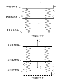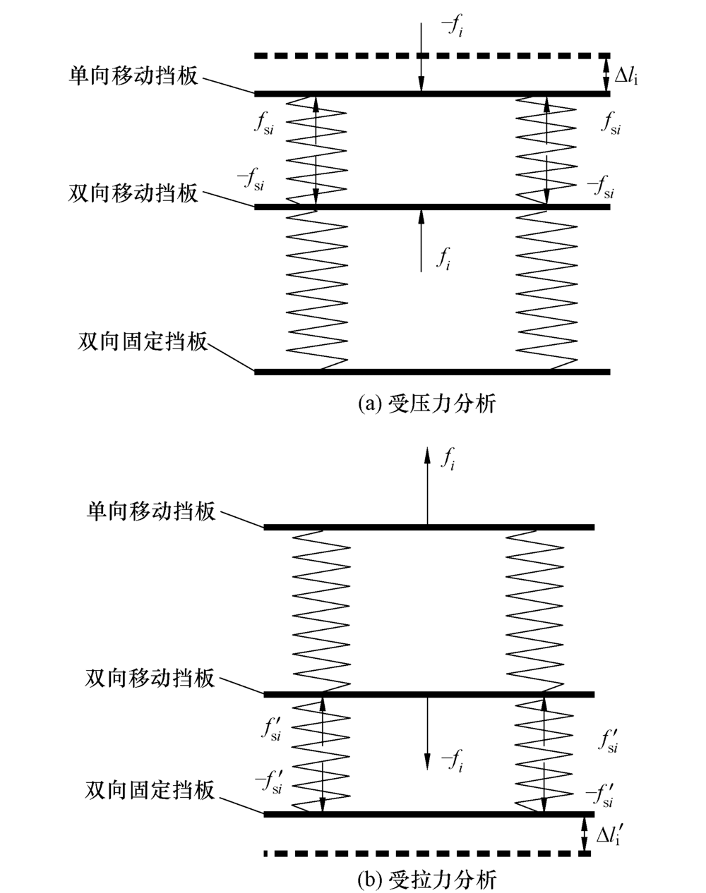 对SEA模块弹簧组受力分析如图 3所示, 分为受压力和受拉力两种情况.受压力时, 上方弹簧组产生压缩变形, 变形量为