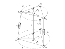 根据3SPS-1S并联机构数学模型, 由空间两点距离公式建立机构的运动学约束方程: