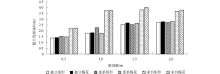 将不同类型的微型桩在不同桩间距和布桩形式下的最大弯矩汇总, 如图14所示.对比不同桩间距下的桩身所产生的最大弯矩, 可知在1.5~2.0 m范围内各桩型的力学性能均得到充分发挥.而对比不同结构形式可以看出, 承台式微型桩, 尤其是梅花形布置的承台式微型桩结构在桩身力学性能及不同桩之间协同受力效应的充分发挥上, 表现出更好的效果, 其最大桩身弯矩分别约为独立式和连系梁型的1.36和1.35倍, 而在其他条件相同的情况下, 梅花形布桩形式微型桩的桩身最大弯矩约为矩形布桩形式的1.02倍.由此可见, 梅花形布置的承台式微型桩在抗弯性能方面更具有优势, 可抵抗更大的滑坡推力.