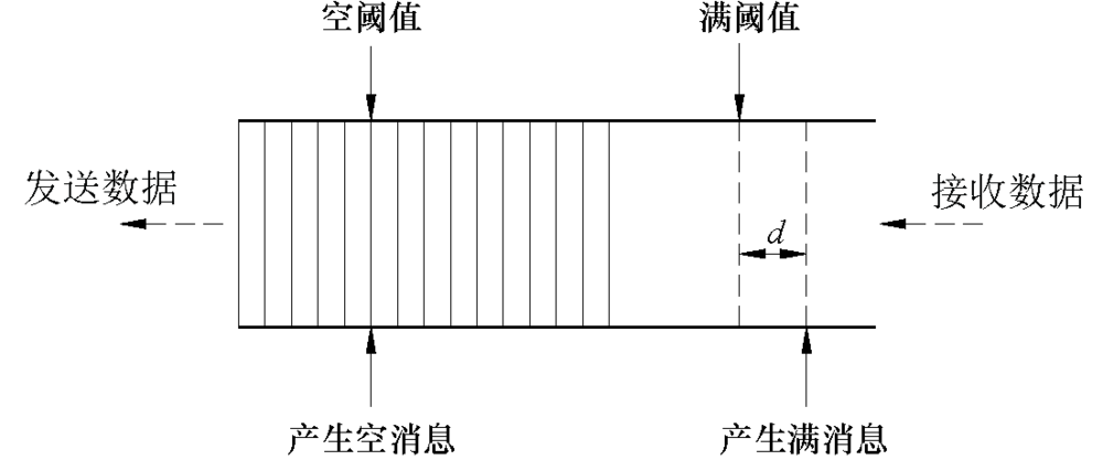 通过限制入口流量解决拥塞压力后, 还需要相应的流量恢复机制.如图5中与满阈值相对应的空阈值(如可设置为满容量的20%).当节点发送队列中的数据量低于空阈值时, 就会发送包含本节点ID的空消息, 使其他节点在路由计算的过程中恢复该节点, 从而恢复本地节点的入口流量; 并将联系图中该节点的满字段减1, 用来计数空消息的发送次数.