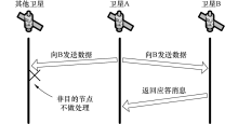 如图1所示, 卫星A根据联系图中的信息, 可在本地自行判断向卫星B发送数据的时机.卫星B收到数据后, 向卫星A发送该数据的应答消息, 卫星A收到应答后则一次通信完成.由于联系图中只保留节点的链路通断特性, 因此需要采用全向天线发送数据, 接收到数据的节点可能不只是目的节点.对于其他接收到数据的节点, 首先会确定是否接收, 对于不接收的数据直接丢弃.卫星与地面站之间的通信与以上过程类似.