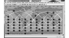 使用OPNET仿真软件实现相应的节点模型并构建网络场景, 对本文作者提出的 CGRS性能做分析和对比.仿真网络场景中包含55个卫星节点、3个地面站节点, 并设定3个地面移动节点模拟观测任务中的对象(即数据源), 其中卫星轨道参考文献[11]的设计, 具体参数见表2.轨道数据使用卫星系统仿真工具STK生成, 并导入到OPNET中使用, 所产生的初始网络拓扑如图7所示.