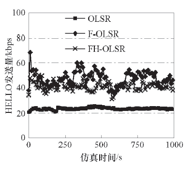本文使用OPNET软件进行仿真建模, 构建文中提出的FH-OLSR协议模型, 并与标准版的OLSR协议进行结果对比分析.