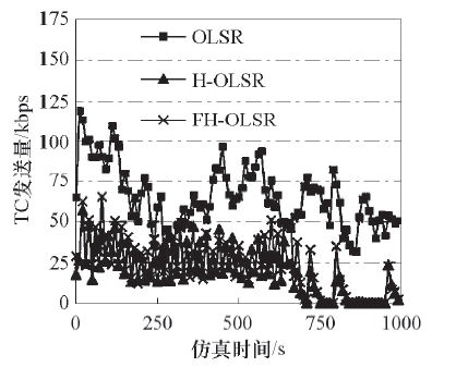 与原版OLSR不同的是, 节点不再周期性地广播TC消息, 而是每当检测到邻居发生变化时, 才发送此消息, 以此来避免“ 广播” 风暴的产生.