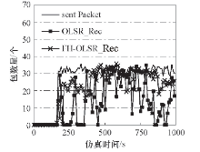 如图13、14和15所示, 由于网络消息发送量降低了25%左右, 降低了信道占用率.FH-OLSR协议的平均端到端延时低于OLSR协议的50%左右, 抖动维持在7 ms左右, 丢包率降低了约15%.