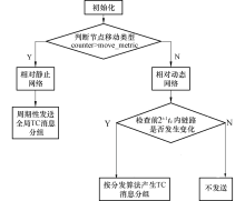 2)判断节点移动模式, 当计数器的值大于移动度量(move_metric)时, 说明在counter周期内链路还未发生改变, 节点移动速度相对静止, 此时, 周期性地广播TC消息; 反之, 节点移动速度相对比较快, 执行步骤3).
