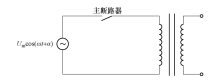 动车组空载合闸接入牵引供电系统时, 动车组牵引变压器可能会出现瞬时较大的冲击电流(也称作励磁涌流)引起系统跳闸.当动车组牵引变压器二次侧开路, 一次侧接入牵引供电系统取电时, 其原理图如图1所示.