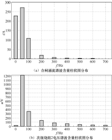 在两列中国标准动车组分别随机合闸15次时, 可以看出合闸后一段时间内合闸涌流和次级绕组电压中含有较高的谐波成分, 次级绕组电压发生明显畸变.分别对CRH0207和CRH0503合闸涌流峰值最大时的第11次和第10次第1个周波进行谐波分析, 谐波分析汇总结果如图6、图7和表3所示.
