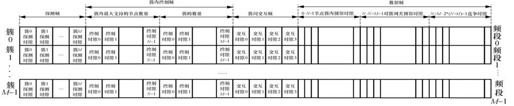 1)簇间探测帧所有节点工作在同一频率, 主要用于选取网关.