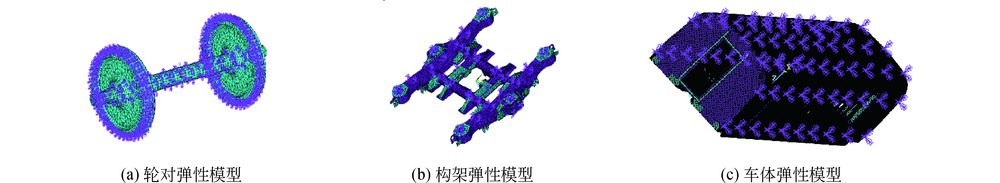此外, 车辆系统结构参数、悬挂参数均按参考文献[12]设定, 所建立的弹性车辆系统动力学模型如图5所示.