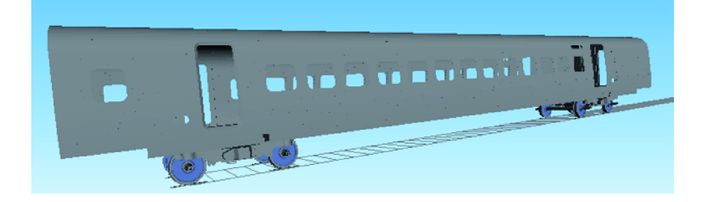高速列车车辆系统动力学模型如图1所示, 是由1个车体、2个构架、4个轮对、一系悬挂和二系悬挂等组成的多体系统.需先借助有限元结构分析软件ANSYS对车体、构架和轮对等部件弹性化处理, 再利用多体动力学计算软件SIMPACK生成弹性部件, 结合车辆系统结构参数和悬挂参数, 建立弹性车辆系统动力学模型.