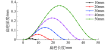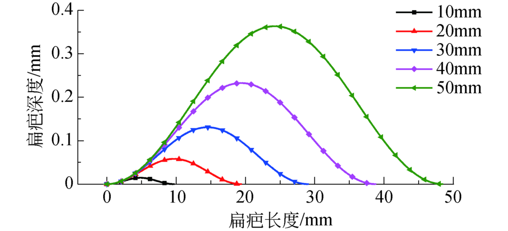 所建立的反映车轮半径变化的旧扁疤模型与扁疤长度和车轮旋转角度相关, 车轮扁疤深度和扁疤长度的关系由图9给出.