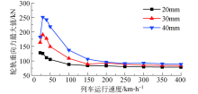 此外, 考虑到车轮扁疤激起的轮轨垂向接触力呈现先增大后减小的趋势.为保障行车安全, 低速下轮轨垂向作用力也应满足170 kN安全限值, 依据图12给出的不同速度下轮轨垂向作用力变化趋势, 车轮扁疤长度需限制在30 mm以下.