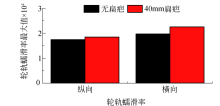 3)车轮出现40 mm扁疤时, 随着车轮旋转运动, 轮轨接触斑面积最大可达142 mm2, 轮轨纵向和横向蠕滑率分别增大4%和16%, 轮轨接触点向轮背侧出现周期性横移.车轮扁疤越长, 车轮磨耗指数越大.