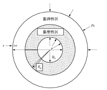在黏弹性区和黏塑性区σ z=(σ θ +σ r)/2均成立[31].黏弹性区应力场为