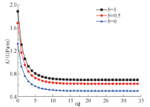 2)参数b反映了中间主应力对围岩力学特性的影响.由图5可见, 同一时间, 围岩时变承载系数随着参数b的增大而增大, 这表明增加中间主应力对提高围岩自承能力有利.当b=0时, 前2 d围岩承载系数降幅达到45%, 而第8 d到第10 d的降幅只有2.7%, 且参数b取值不同时, K(t)随时间增加降幅相似, 说明围岩时变承载系数在前2 d会发生骤降.