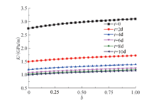 塑性区应力应变关系是非线性的, 不能被广义Hooke定律正确表征, 因此假设塑性区应力应变关系可以乘以一个表示非线性关系的塑性模数Φ [32], 即: