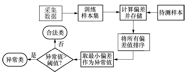 本文作者采用单类K-NN计算偏差值, 它是一种分类与回归方法, 区别于一般的K-NN, 它将训练数据集中的所有实例只划分成一个类别.分类时, 对新的实例, 根据其K-NN个最近邻的训练实例的类别, 通过计算距离等方式进行预测该实例是否属于这个类别.算法最终只有属于该类别和不属于该类别两种结果.