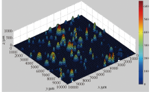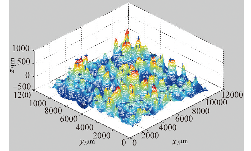 通过基于白光共聚焦原理的三维表面形貌轮廓仪可以测得砂带表面磨粒分布三维点云数据, 三维表面形貌轮廓仪如图2所示, 并通过Matlab软件将三维点云数据生成三维曲面如图3所示.