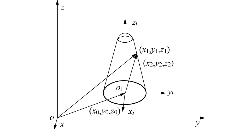 由图4可知, 全局坐标系(x, y, z)下磨粒顶点分布, 通过空间坐标变换求得局部坐标系