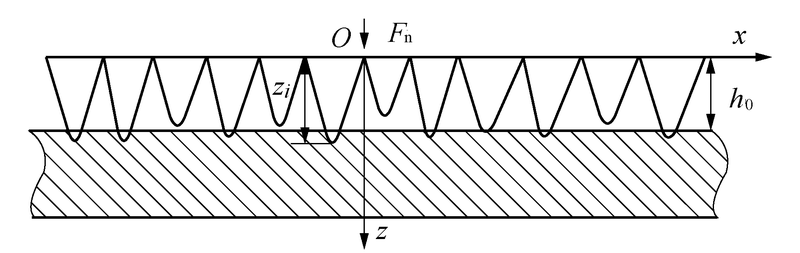 h0, 施加打磨压力Fn 见图8, 所有高度z> h0的磨粒都与工件表面接触, 高度为zi的磨粒i压入工件表面深度为