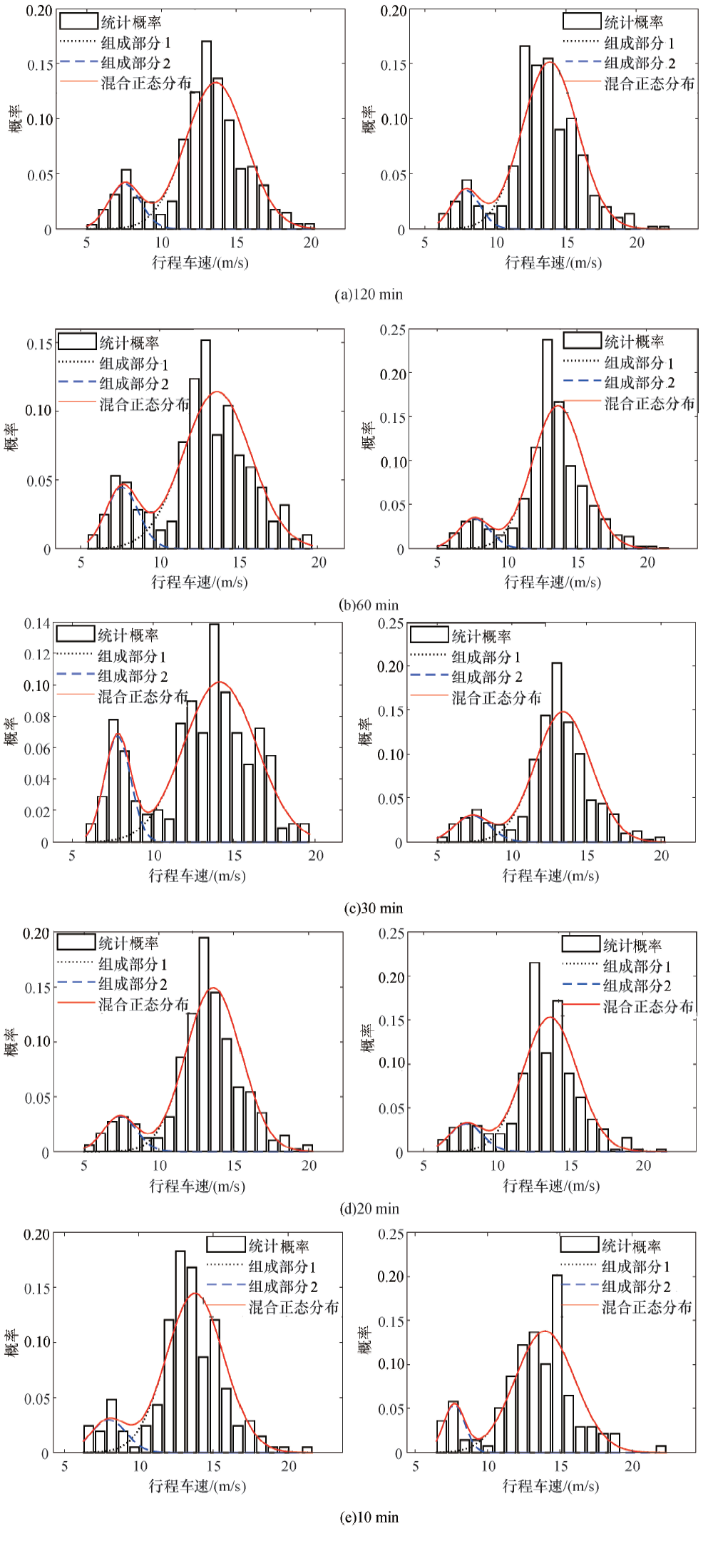 2)截断混合正态分布能够对不同时间区间粒度的车辆行程车速进行拟合, 从而证明了动态参数的可行性;