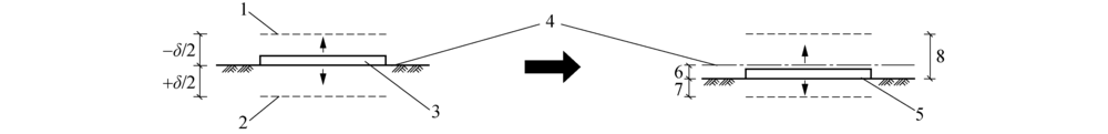 ![]() | 图3 位移加载控制示意图 1— 加载板底面上限位置; 2— 加载板底面下限位置; 3— 加载板; 4— 模型初始表面; 5— 加载某时刻模型表面; 6— 某时刻表面累积塑性变形; 7— 最大弹性变形; 8— 最大离缝高度Fig.3 Schematic diagram of loading under displacement control |