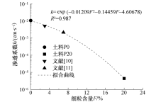 ![]() | 图4 级配碎石渗透系数与细粒含量关系Fig.4 Relationship between hydraulic conductivity and fines content for graded crushed stone |