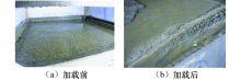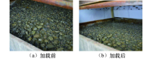 模型在持水状态下均不发生翻浆现象, 不受细粒含量和加载方式的影响; 模型应力控制加载过程中, 加载板与模型表面没有离缝间隙, 处于饱和积水或饱和无积水状态下的土料P0和P20也未出现翻浆; 当模型处于饱和积水状态、且采用加载板和模型表面有离缝的位移控制加载期间, 填筑土料P0和P20的模型均出现大范围的翻浆现象(见图6和图7); 模型在饱和无积水状态的位移加载方式作用下不会形成基床翻浆(见图8).