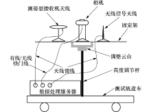 针对铁路应用现场环境的特征, 本文所设计的分析装置见图7, 装置使用鱼眼镜头模拟安装在列车顶部的GNSS天线, 采集测试点处的天空图像, 测姿型接收机实时获取装置运动的姿态信息, 将图像中的方位角与实际的真北角对应起来.高度调节杆始终同轨道平面垂直且高度低于列车车顶GNSS天线实际高度, 以获得保守的计算结果.接收机实时获取镜头所在的位置坐标, 接收机和图像采集装置的时间同步由数据处理服务器完成, 服务器同时包含无线通信模块, 以实现车地间数据的无线传输.