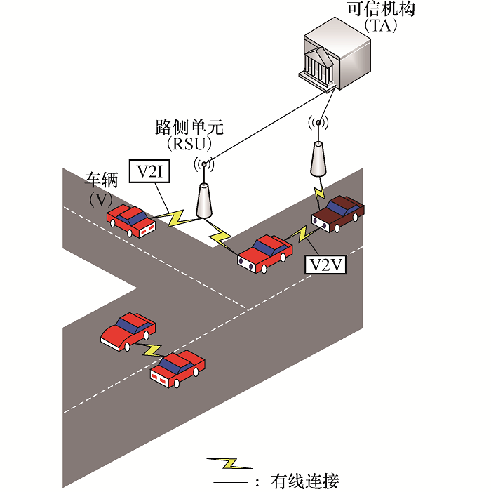 当前, 车联网(Vehicle Ad Hoc Networks, VANET)已成为发展智能交通系统的主要方式, 在VANET环境下, 每辆车都配备一个车载单元(On Board Unit, OBU), 允许它与其他车辆通信, 这种类型的通信是车-车(Vehicle to Vehicle, V2V)通信.此外, 车辆还可以与路侧单元(Road Side Unit, RSU)通信, 这被称为车辆-RSU(Vehicle to Infrastructure/RSU, V2I/V2R)通信[1].在车联网环境中, 通过V2V和V2I的通信, 能够极大改善道路交通状况, 减少交通事故, 同时还能够向车辆提供视频、音乐等定制性娱乐服务, 为用户的生活带来极大的便利, 提升了用户驾驶的优越感.但是VANET无线通信本身也面临着各种复杂的安全威胁, 如攻击者通过改变或伪造恶意数据进行伪造攻击或者假冒攻击, 攻击者通过关联同一车辆发送的消息实施关联攻击, 能够获得用户的工作位置、家庭位置、娱乐行为、生活习惯等隐私信息, 从而给用户带来安全隐患.因此, 防止用户通信过程中的隐私泄露, 对用户的隐私进行保护成为车联网系统中安全通信的最基本需求[2], 而进行隐私保护的基本方法之一是匿名认证[3].为了防止有些车辆滥用匿名机制发送恶意消息, 可信实体(Trusted Authority, TA)需要追踪发送恶意消息的车辆, 意味着匿名是有条件的.