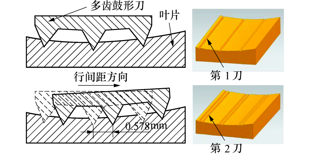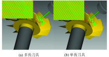 2)以小叶轮为例给出了基于多齿鼓形刀的叶片曲面微结构加工的刀位轨迹规划方法, 相较于单齿刀具的微结构加工仿真, 本文设计多齿鼓形刀的刀位轨迹长度和加工时间均明显减小, 加工效率得到了明显的提高.