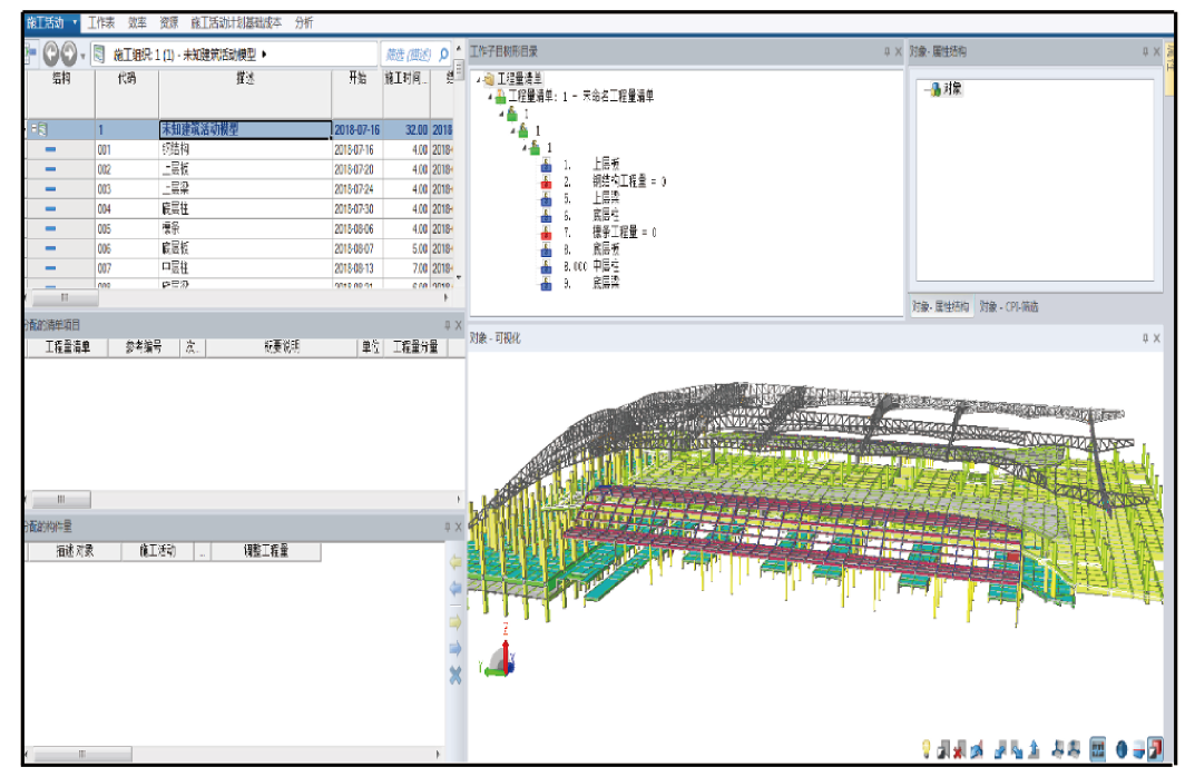 4)建立高质量的BIM模型, 精确计算钢结构的具体工程量, 实现对不同流水段、不同分部钢结构用量的精确统计, 进一步控制材料用量, 减少材料浪费, 结合施工计划进一步控制工程资金流动, 减少工程资金风险.在不突破设计总量的情况下, 协助施工单位进行内控管理, 实现对下分包的精细化管理, 确保工程效益.