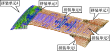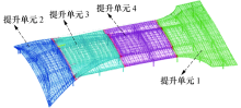 图4中, 共划分为4个提升单元和6个拼装单元, 结构验算主要包括拼装单元的荷载计算、提升单元的荷载验算、提升支架结构验算和下吊点有限元分析, 确保钢结构拼装、提升全过程结构安全.