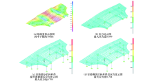 依据设计说明、设计图纸及施工方提供的施工建议, 通过钢结构BIM三维模型, 对钢结构提升进行验算; 提升结构及提升支架采用结构分析软件SAP2000 进行计算.经过对钢结构提升单元1的三维BIM模型的实验分析得出(见图6):提升阶段, 提升单元1结构下挠 70 mm, 最大应力比 0.704, 满足提升要求.