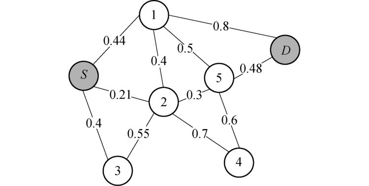 综上, 可以从OLSR中的Dijkstra算法中计算路由路径得到从S到达D的具有最小q值的一条路径S→ 2→ 5→ D, 当节点的邻居节点有所变化的时候, 节点会动态更新自己的q表, 从而使网络能够动态适应拓扑的变化, 及时地做出响应.